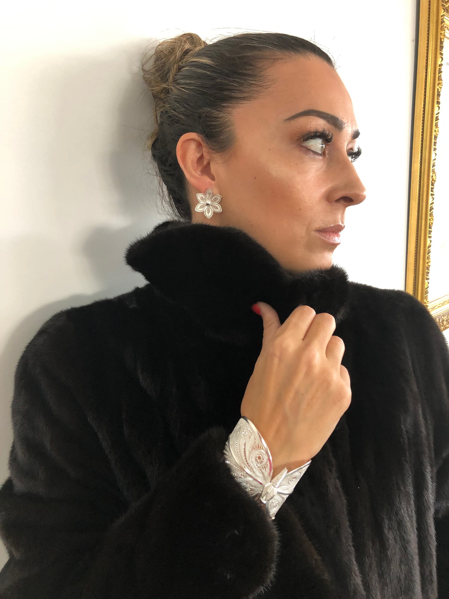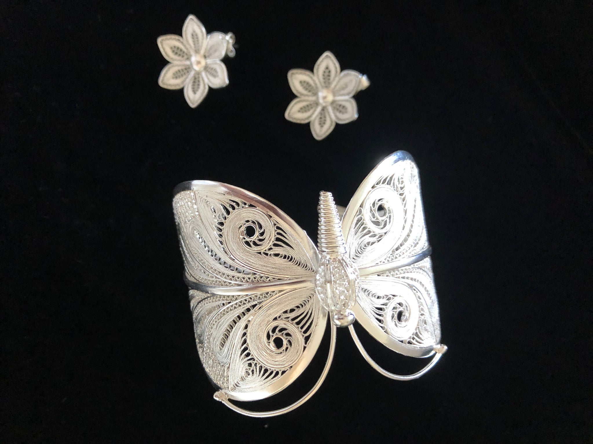 Beautifully design lace technique silver filigree cuff bracelet & Matching earrings.